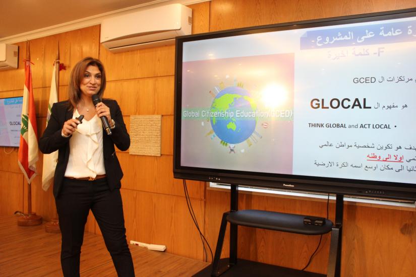 وعرضت ممثلة المديرية العامة للتربية الاستاذة رانا جنبلاط لمحة عامة عن المشروع وتطرقت إلى الخطوات المتبعة من تشكيل اللجنة إلى عقد ورش العمل وإجراء المسح بشمولية تامة تناولت كل المواد الدراسية والحلقات والصفوف، وذلك ضمن معايير محددة من الأونيسكو، وتم استخلاص مدى وجود مفاهيم المواطنة العالمية في المناهج اللبنانية، ليصار إلى إعداد تقرير مفصل ومشاركته مع مركز آسيا والمحيط الهادىء للتعليم من اجل التفاهم الدولي .