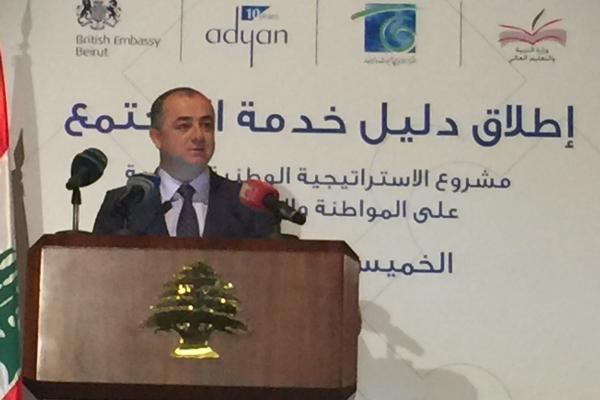 رعى وزير التربية والتعليم العالي الياس بو صعب الاحتفال بإطلاق  "دليل خدمة المجتمع"، في مرحلة التعليم ما قبل الجامعي لتلامذة المرحلة الثانوية، الذي وضعه متخصصون تربويون بالتعاون بين المركز التربوي للبحوث والانماء ووزارة التربية والتعليم العالي ومؤسسة "أديان". وقد أقيم الإحتفال  في قصر الأونيسكو في بيروت في حضور السفير البريطاني هيوغو شورتر ورئيس مؤسسة أديان الأب فادي ضو  وجمع من الشخصيات التربوية والتعليمية ومديري المدارس والمؤسسات التربوية .