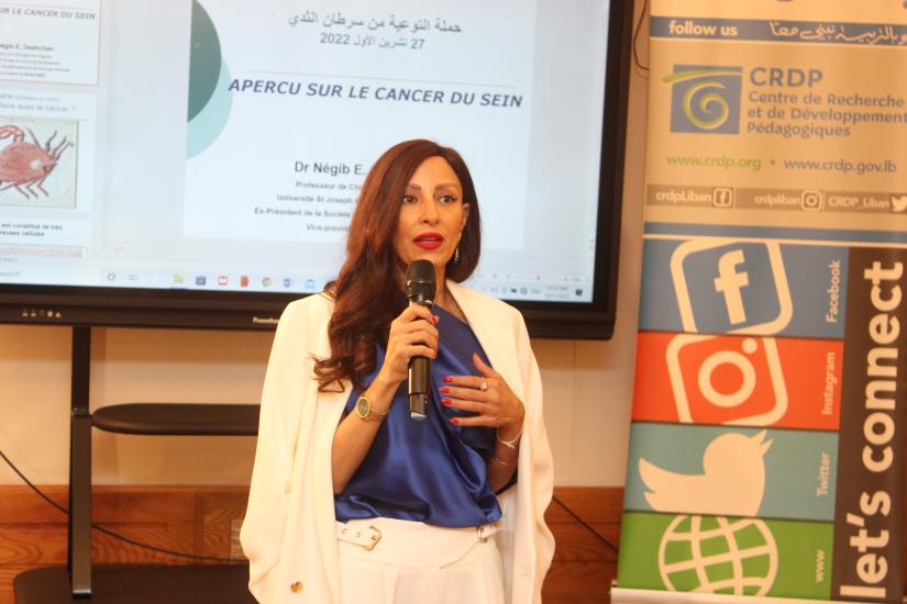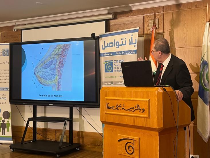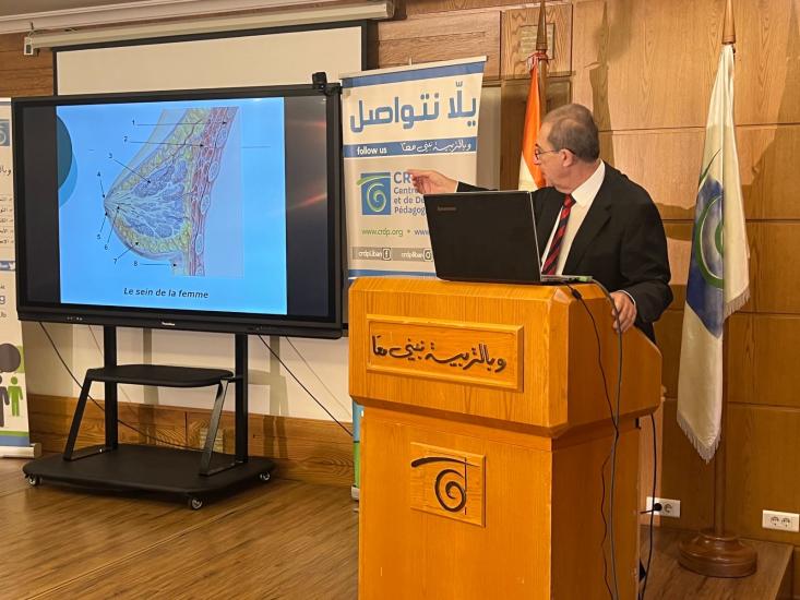 نظم المركز التربوي للبحوث والإنماء لقاء في مبنى المطبعة في سن الفيل مع الدكتور نجيب جهشان حول سرطان الثدي .